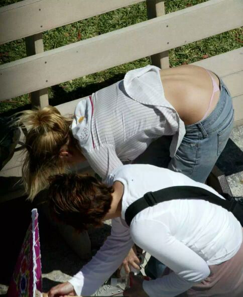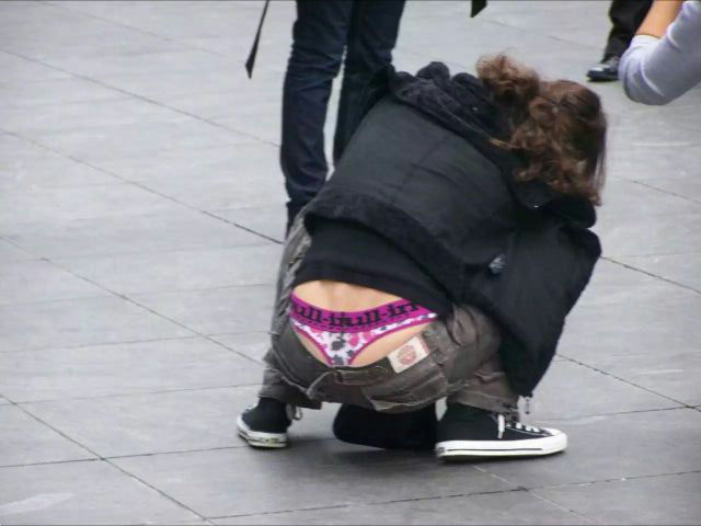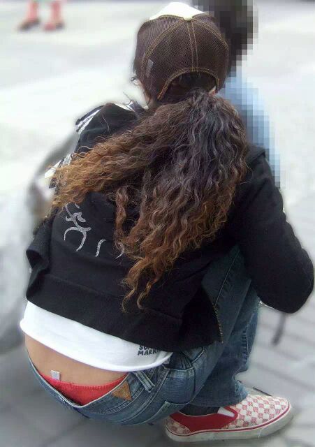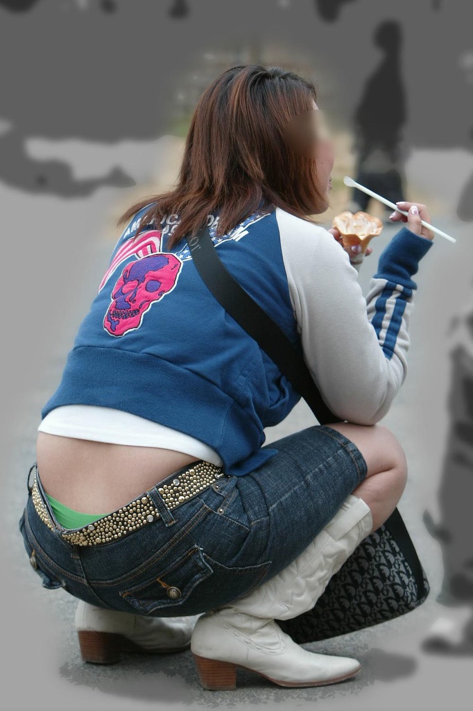 【エロ画像】ファッションとかいう言い訳を押し通すローライズチラ女子