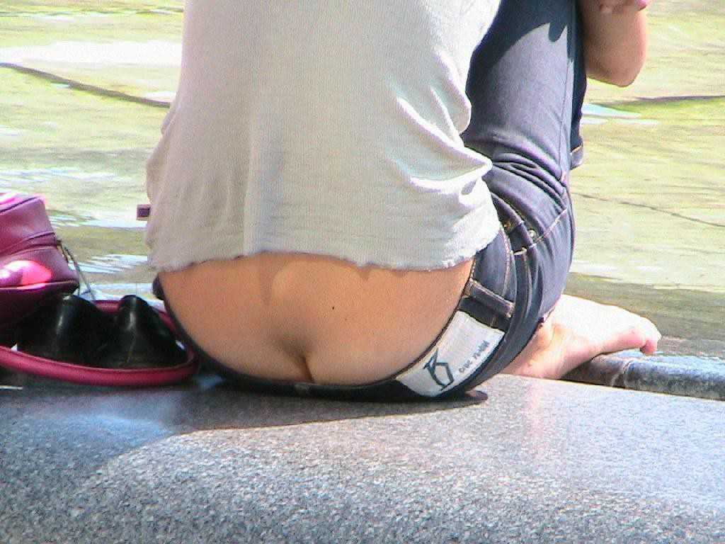 【エロ画像】ローライズから尻の割れ目まで見えちゃった、素人女性たち