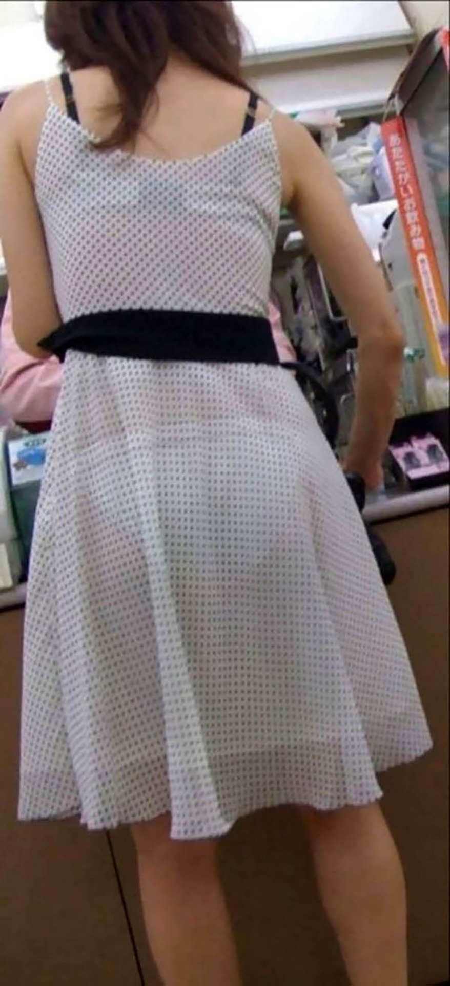 【エロ画像】色も判れば覗く必要なしw下着がクッキリ浮いた街の尻